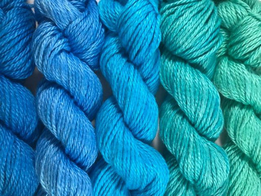Hand Dyed Bamboo Cotton DK Yarn Gradient Set (Teal to Blue)